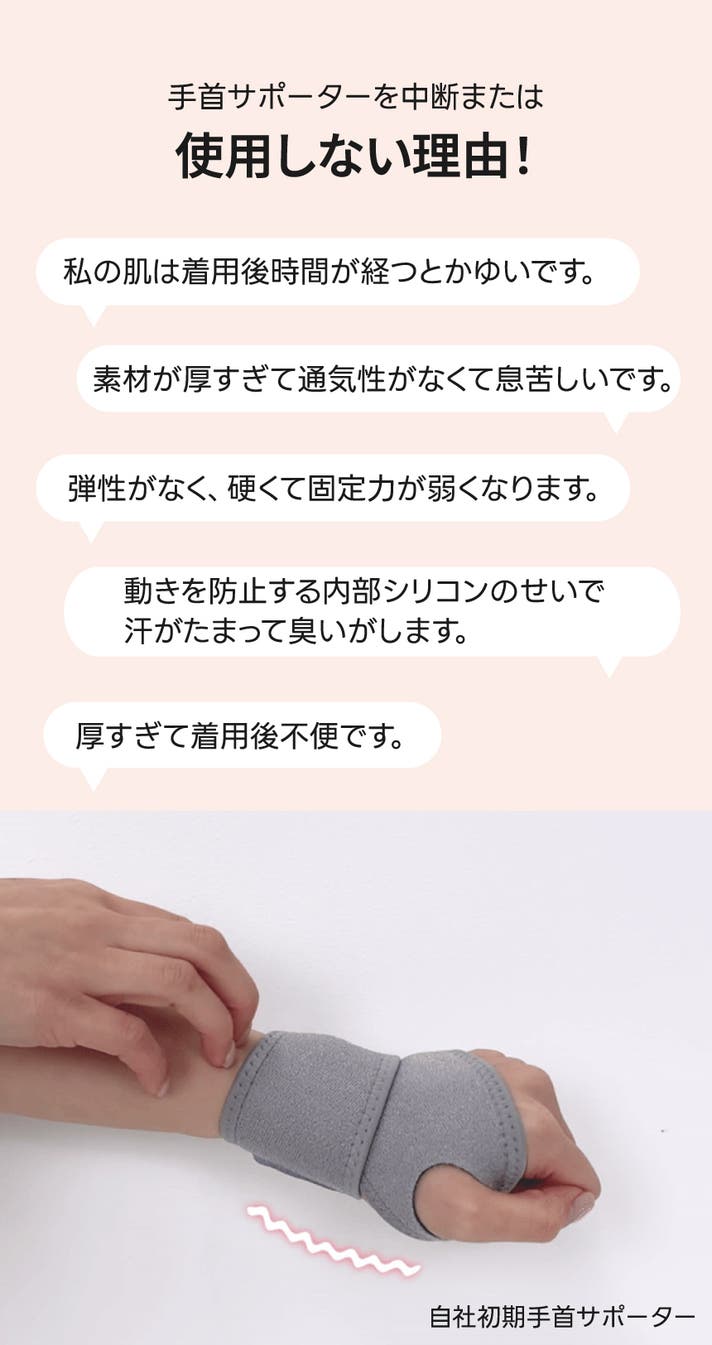 日本の市場では、手首サポーターといえば厚くて目立つ・蒸れやすい・使いにくいというイメージが強く、「不便になったら仕方なく使うもの」という印象を持たれる方も多いのが現状です。