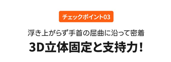 屈曲のある手首を360°立体的に圧迫と固定できるように弾力性のある素材で隙間を少なくし、広く手首を固定することができます。