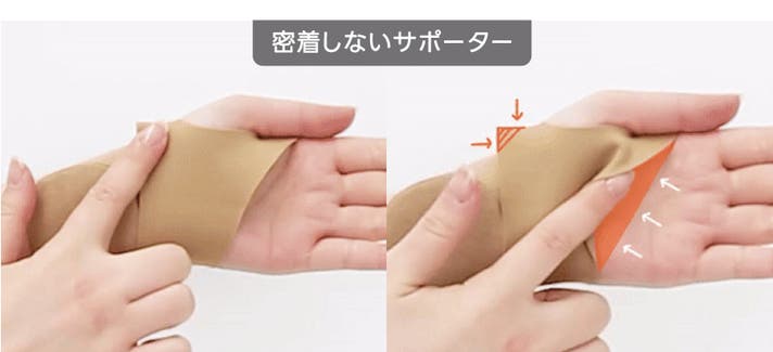 デイリー1mmの手首サポーターに使用された粘着テープは、従来品とは異なる粘着テープで、荒くなく衣類にくっつきにくく、密着力が良く手首を丈夫で、肌に接触しても刺激が少なく固定してくれます。
