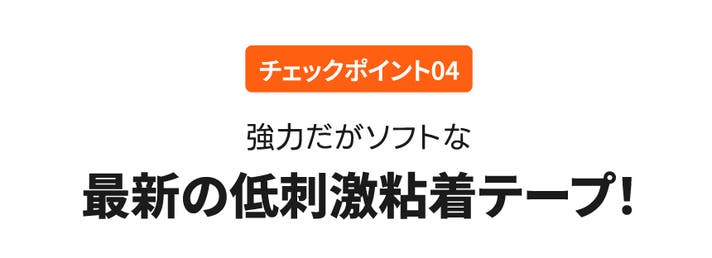 既存の粘着テープは服に粘着しやすく、肌に触れると弱い肌は皮膚反応が発生します。