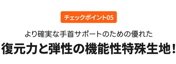 手首サポーター機能にシナジー効果を加える復元力に優れた特殊弾力素材は、より強力な支持力と復元力で長時間手首を固定してくれます。