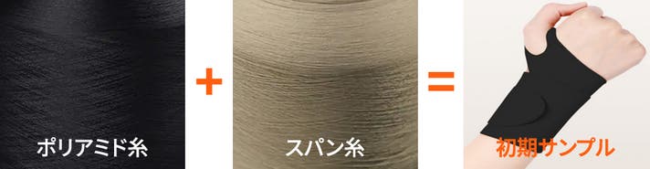 1mm一枚で無縫製製作する手首サポーターは、長く使えるようポリアミドとスパン原糸を配合し、強い耐久性と摩耗性、軽さ、柔らかさを実現しています。
