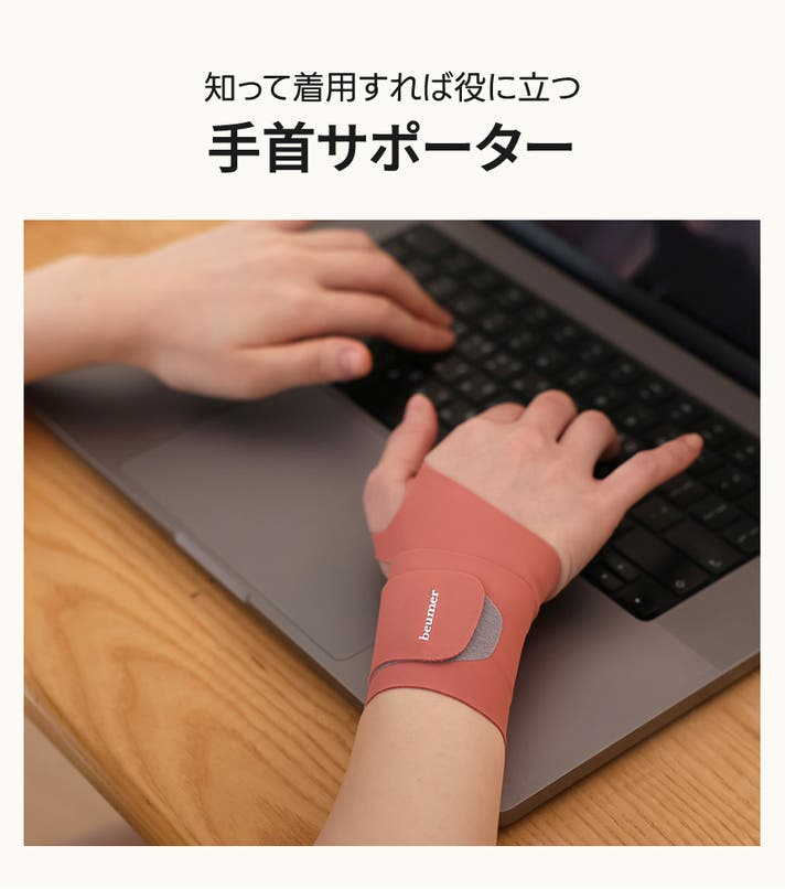 手首サポーターは、単に手首を包むアクセサリーではありません。 正しく使えば手首の負担をサポートする事にも役立ちます。手首を中立位置に固定することで、支柱は腱や靭帯の負担を軽減し、適切に固定することができます。