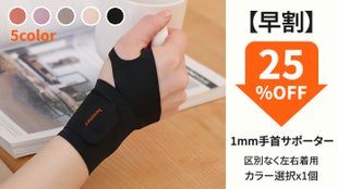 「早割-25%OFF」広く手首を固定する1mm手首サポーターx1個