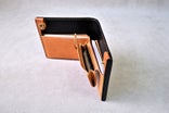 - 中身は減らさず、財布だけ小さく。可動式構造で、閉じれば厚みを避け、開けば取り出しやすい位置に。