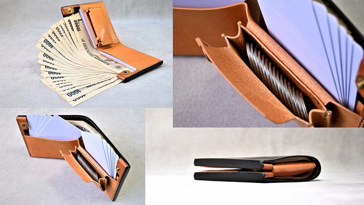 ◈ お札は、収納後にはみ出さないよう、底とマチにわずかな“逃げ”を設けて設計。