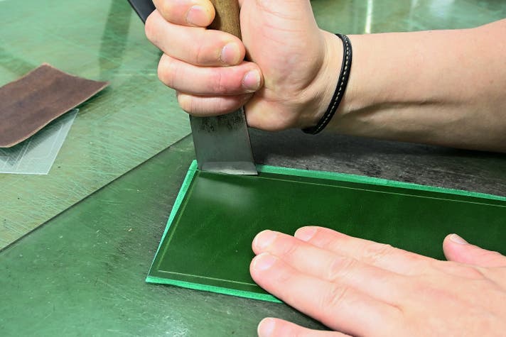 手縫いで一つひとつ仕立て、コバは蝋で磨き仕上げ。