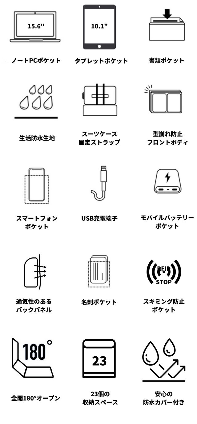 - 反則的収納力!23個の目的別収納ポケットでかさばる荷物をばらけずに格納。なのに取り出しやすい!
