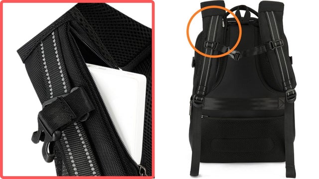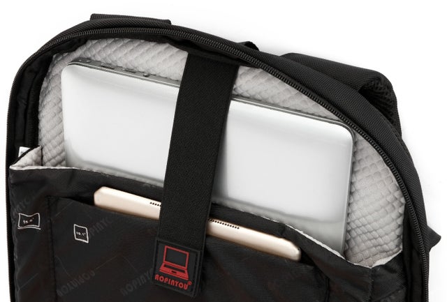 ノートPC専用ポケットあり!ノートPCが滑り落ちないようにバンドでしっかり固定できます。