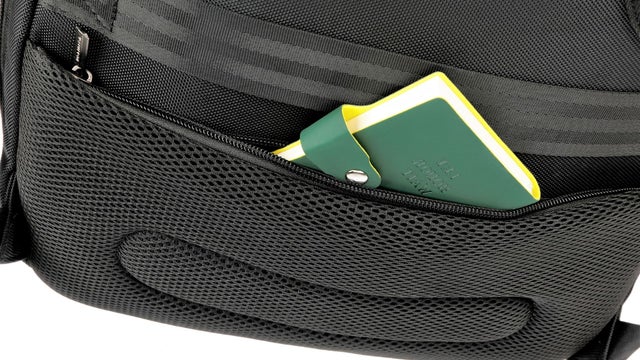 メッシュポケットは大きく収納力があるので、周辺機器類をそのまま入れたり、ポーチなどに小分けしても収納ができます。
