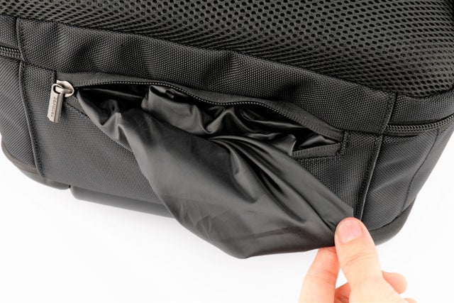 バック底面のポケットです。主に、同封の防水カバーを入れます。