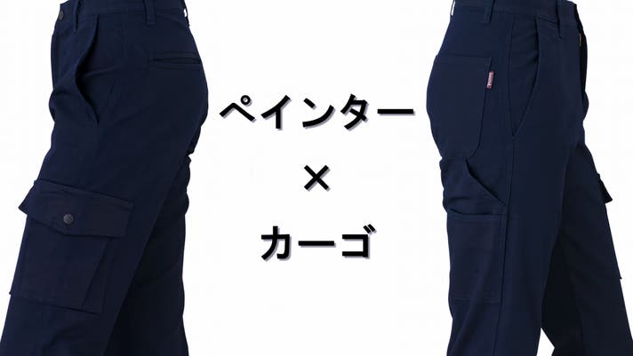パンツの左側にカーゴパンツ、右側にペインターパンツのデザインを施してあり、機能性抜群でデザイン性にも優れたパンツとなっています。