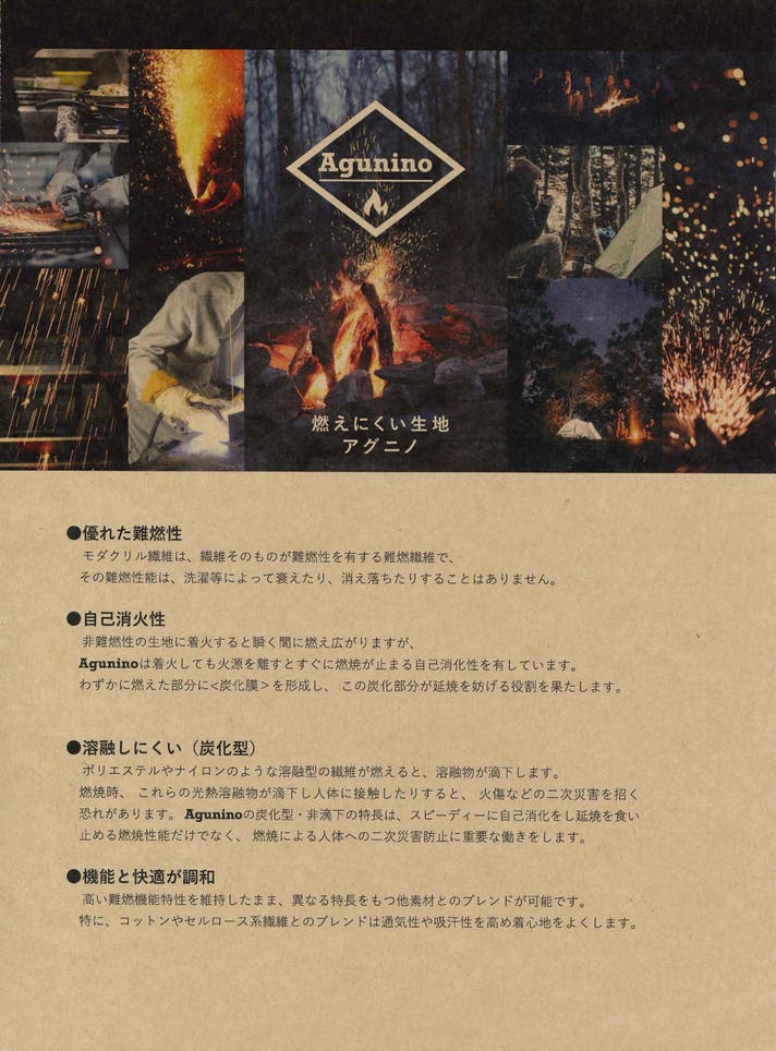 ● 燃えにくい難燃素材「アグニノ」を使用します。