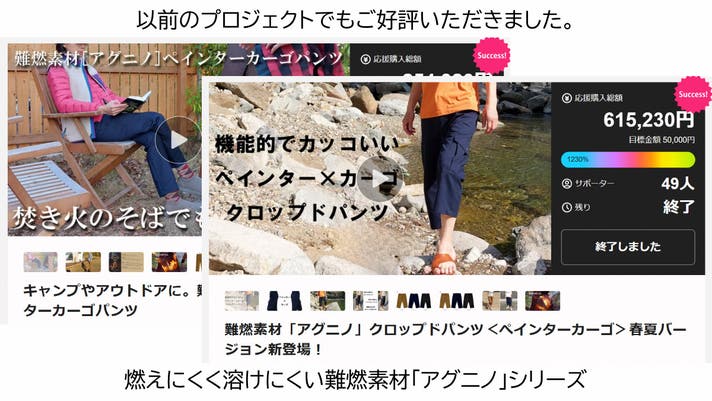 「Makuake(マクアケ)」は、実行者の想いを応援購入によって実現するアタラシイものやサービスのプラットフォームです。このページは、 ファッションカテゴリの 「難燃素材「アグニノ」を使用!斬新デザイン<ペインターカーゴ>アンクルパンツ」プロジェクト詳細ページです。