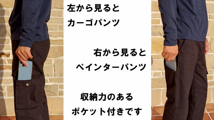 ● ぺインターパンツとカーゴパンツ、それぞれのデザインを楽しめ、収納力の高いポケットも備えた、ファッション的にも機能的にも優れモノのパンツです。
