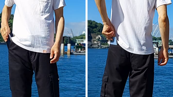 2タイプのパンツデザインをミックスして、良いとこどりしたのが、この「ペインターカーゴのデザインです。