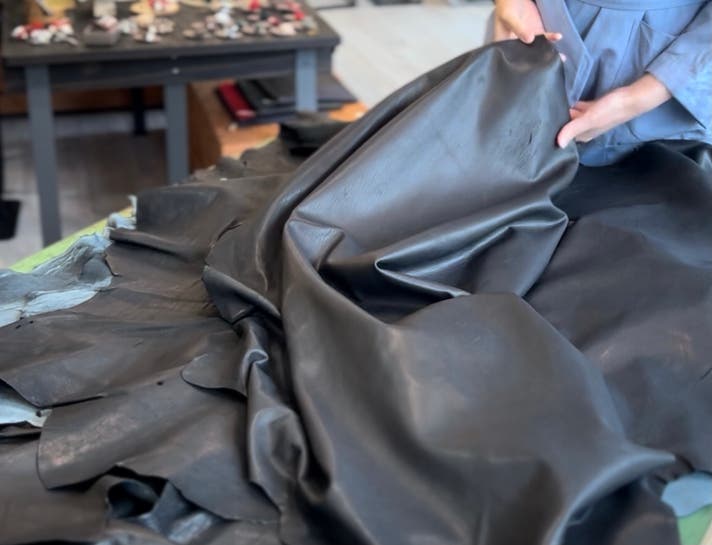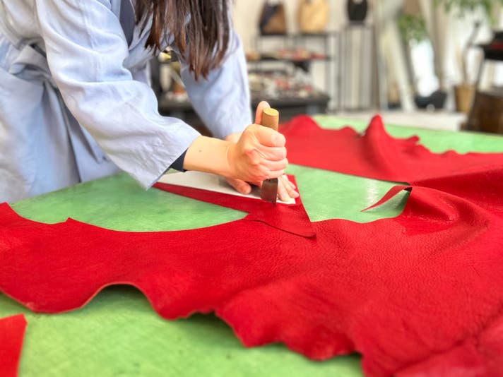 個体差のある革をどう生かすか、1枚1枚選んで仕分けしています。