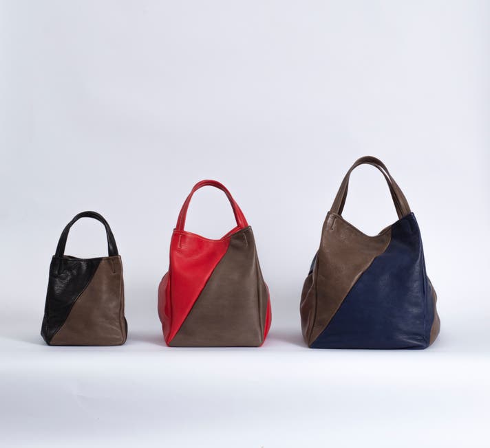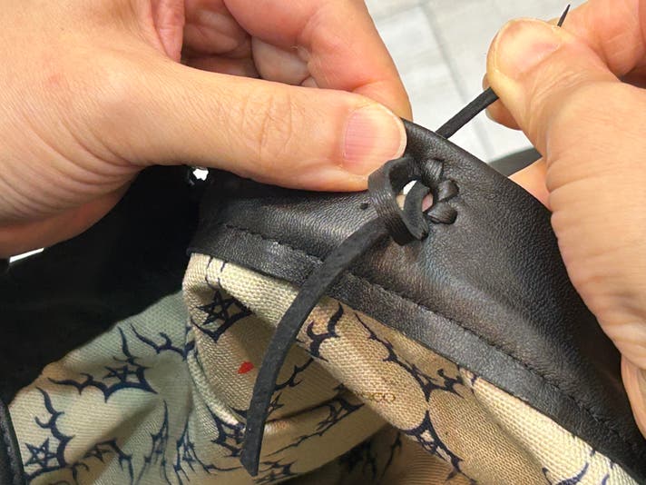 革のしなやかさを生かし、金具を一切使わず、身体に寄り添うように角が当たらない形です。