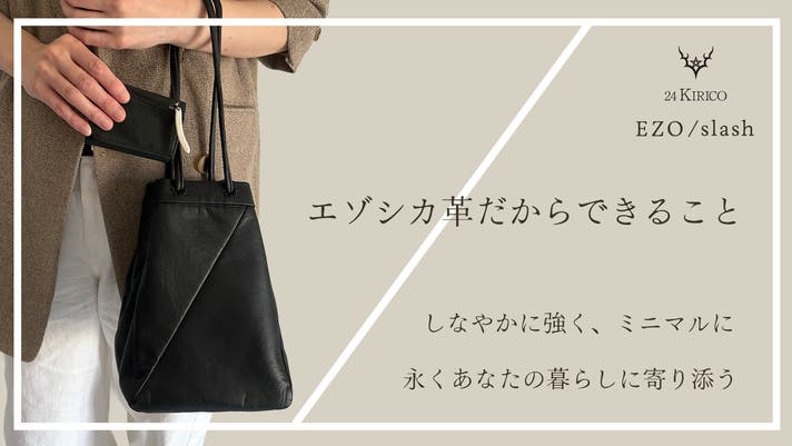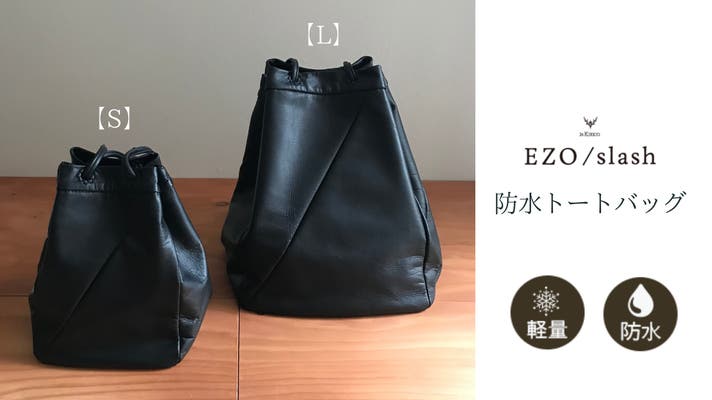 2015年に札幌市の地域ブランド「札幌スタイル」に認証されたEZO/slashシリーズが、防水機能を持った革にてリニューアル!持ち手の部分も中身が見えないように巾着型に仕様変更し、男女兼用で使えるデザインにしました。