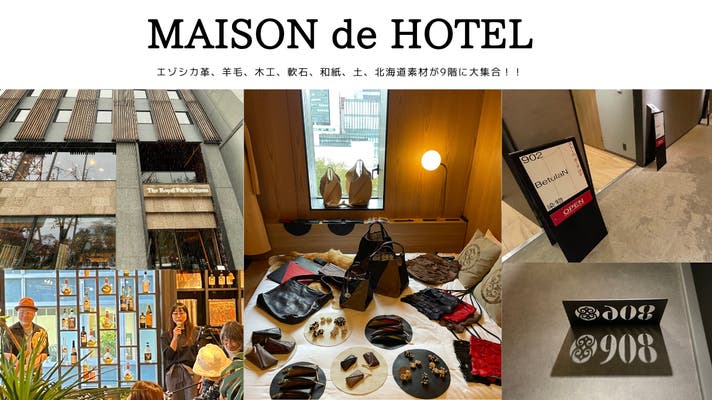 北海道文化マテリアル協議会では、より多くの方に北海道素材の魅力を伝えるため、北海道木材産業共同組合連合会(HOKKAIDO WOOD)や林野庁森林管理局の協力もいただきながら木材や土、石、エゾシカ革や羊毛など、北海道素材を使ってものづくりをしている事業者を集めてイベントを開催しています。ホテルのワンフロアを貸し切ってお部屋ごとに商品を展示販売するイベント「MAISON de HOTEL」は、今年で3年目になります。