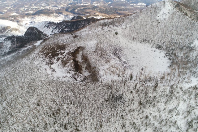 <クラウドファンディングを実施する理由> 写真 草津白根山の噴火口(DJI製 P4P)