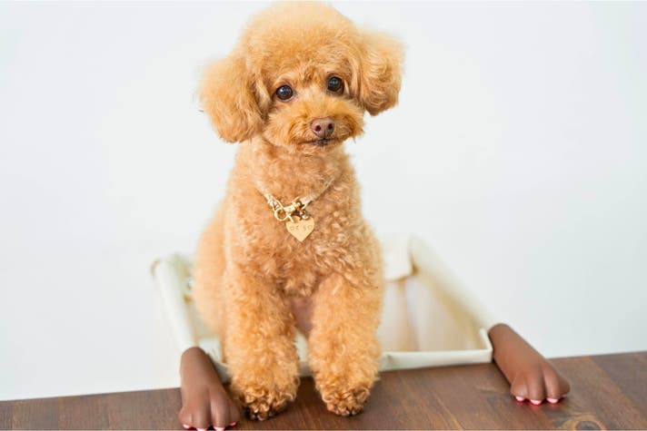 「アイラブユー」と“おしゃべりする動画”で人気のトイプードル・むぎちゃんが、肉球アームのペットチェア『Chocorin(チョコリン)』の試作品に試乗!