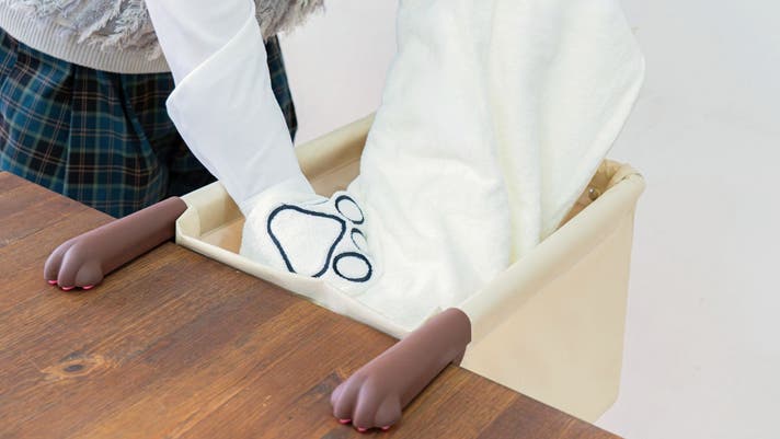 テーブルに取り付けるアーム部分には、立体的な「肉球おてて」型の滑り止めキャップを採用。設置時の安定感にも配慮しました。