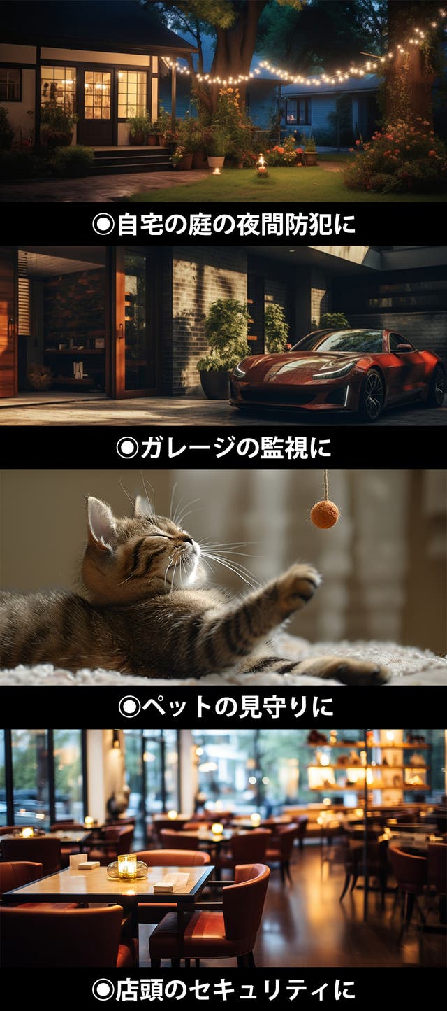- フルカラー暗視技術&2MP高画質で、暗闇でも鮮明撮影。スマホから警告音と光で不審者を撃退!