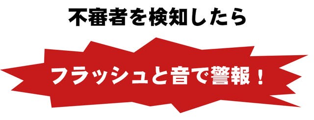 もし怪しい人を見かけたらアプリ内のアラームボタンをワンプッシュ、警報を鳴り響かせて撃退できます。人間を検出すると自動※で警報アラームが鳴り、スポットライトを点灯させて大切なお家を守ります。