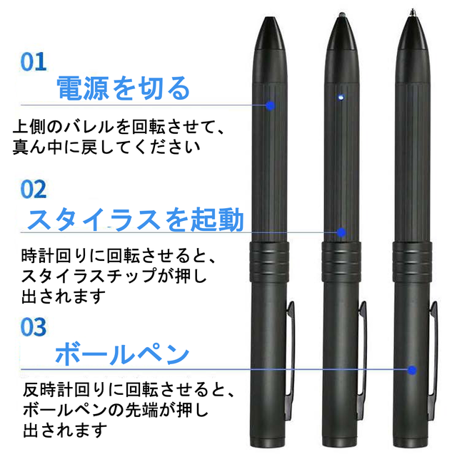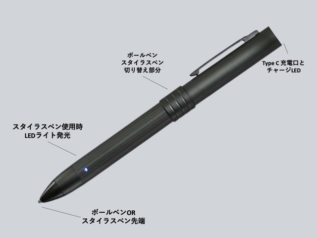 - スタイラスとボールペンの2つの機能を兼ね揃えた新しいスタイラスペン