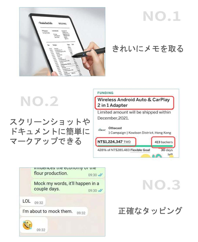 スマートフォン上でより細かい図面を描いたり、手紙を書いたりするたびにとても不便に感じていました。以前は普通のタッチペンを持参していましたが、紙にサインや文字を書きたいときはペンをもう1本持ち歩く必要がありました。