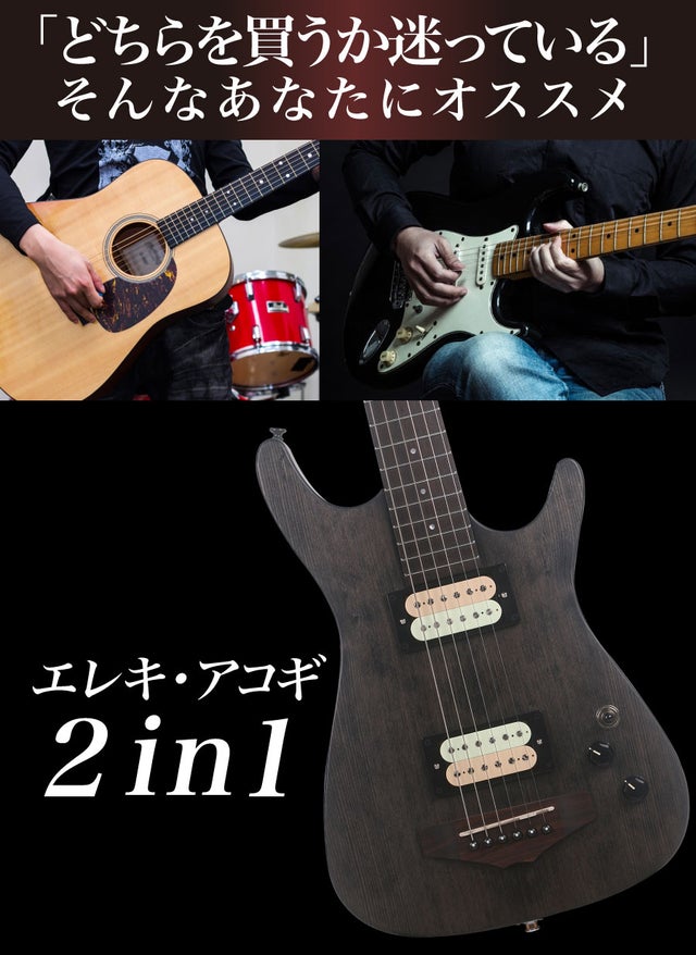 - 【エレキ+アコギ】弦を張り替えてどちらのサウンドも楽しめる2in1ギター!