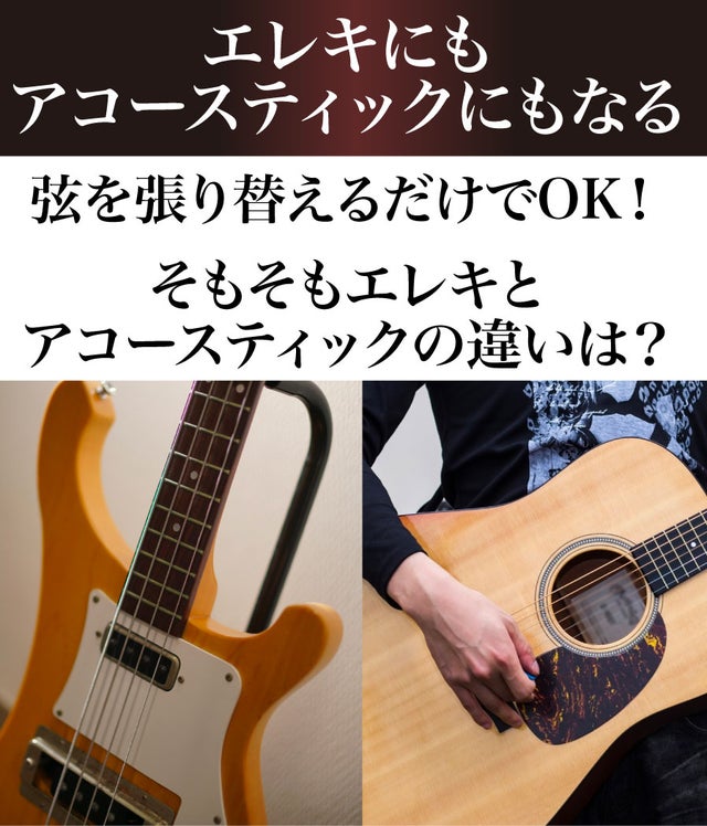 弦を張り替えて、エレキとアコースティック、どちらの音色も奏でられます
