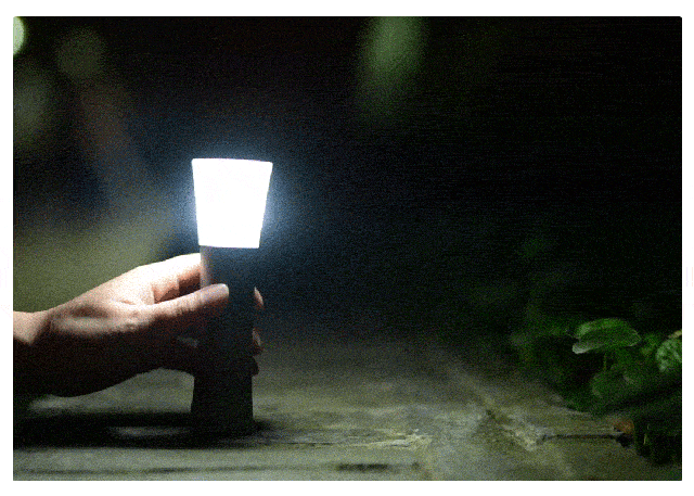 「2way懐中電灯」は、重力センサーを内蔵しており、地面と平行で懐中電灯、垂直で周りを明るくするランプになります!