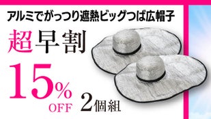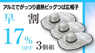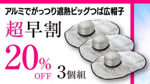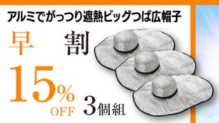 お一人でも多くの方にお得に「アルミでがっつり遮熱 ビッグつば広帽子」をご使用頂きたく、先着順ではございますが【超早割】もご用意させていただきました!割引率は3個組で最大20%!この機会に是非お求めください。