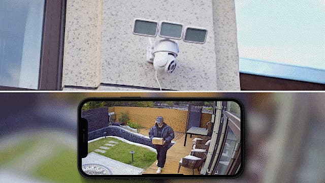 - PTZ機能やフリーアーム式ライトより360°全方位死角なし監視可能!人のみ検知、誤警報減少!