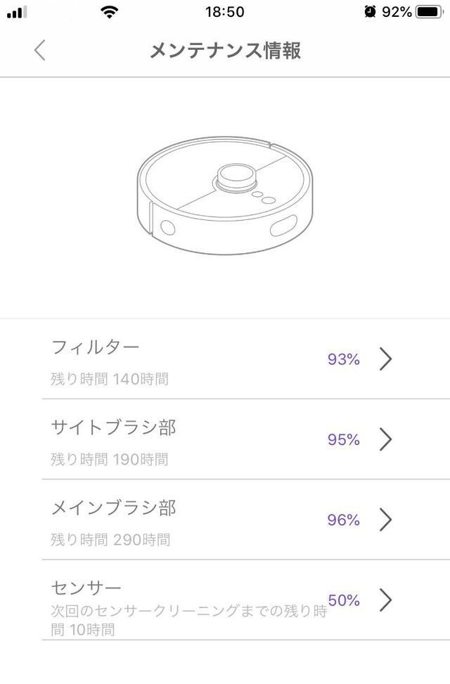 センサーのクリーニングやフィルターの交換時期などを自己診断してメンテナンス情報を通知します