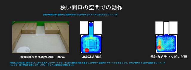 ▲360CLARUSは効率的にすべてのエリアをクリーニング