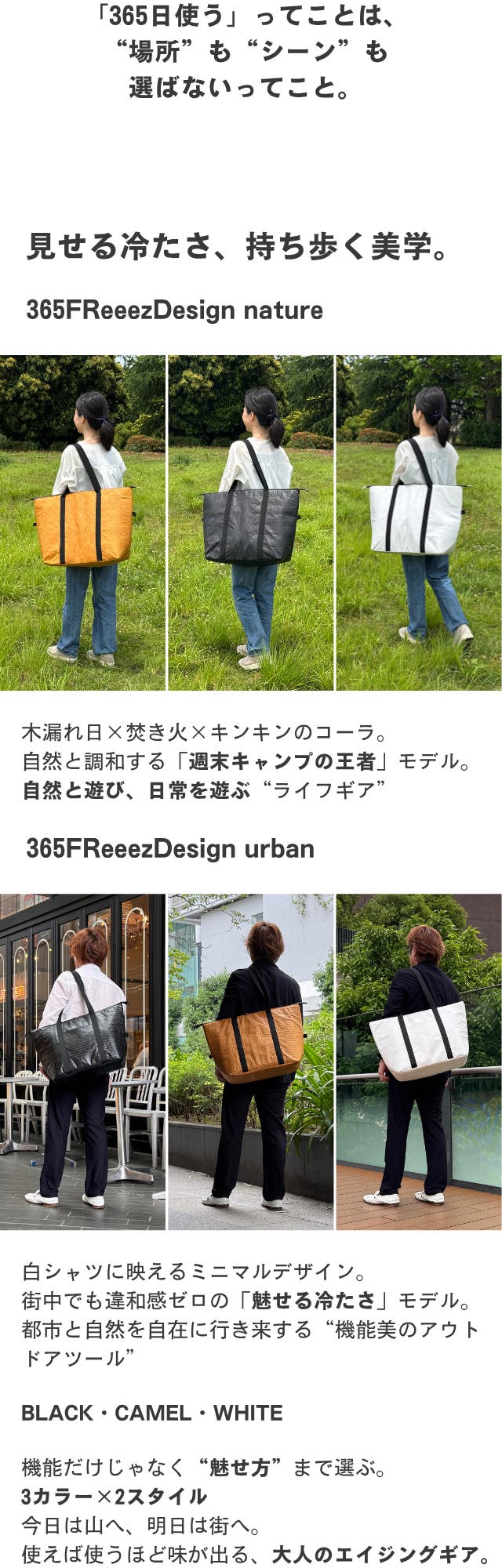 ネイチャー・アーバンの2デザイン、キャメル・ブラック・ホワイトの3色の6種類からそれぞれお選びいただけます。
