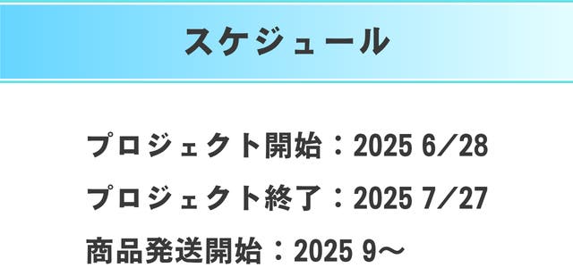 このプロジェクトはAll in型です。目標金額の達成に関わらず、プロジェクト終了日の2025年07月27日までに支払いを完了した時点で購入が成立します。