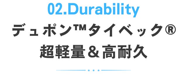 - 水・汚れ・衝撃にとにかく強い!デュポン™タイベック®で365日、タフに使える。アウトドアに。