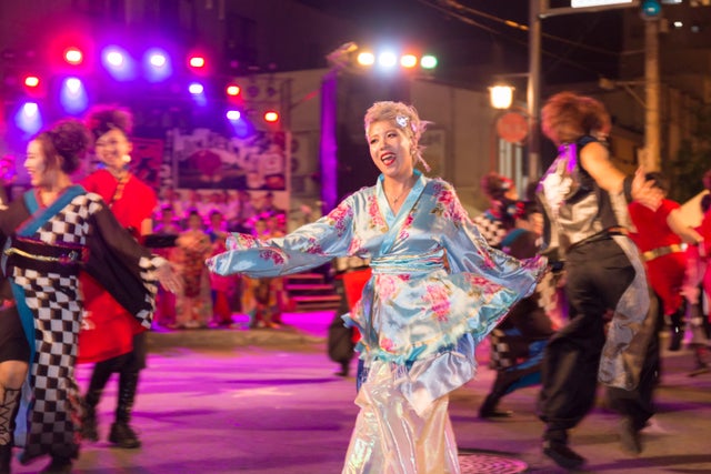 ステージではバンド演奏、カラオケのど自慢、ダンスなど盛りだくさんのイベントを連日開催!よさこいソーランナイトは3日、みこし華酔会の出陣は4日夕方、夜ディスコナイトで締めくくられます!
