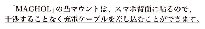 「簡単にスマホが外れないか心配・・」と思われるかもしれません。「MAGHOL」は、マグネットホルダーと凸マウントが、凹凸に噛み合うマグネット吸着仕様となっているため、ずれず不意にはずれくい構造となっています。