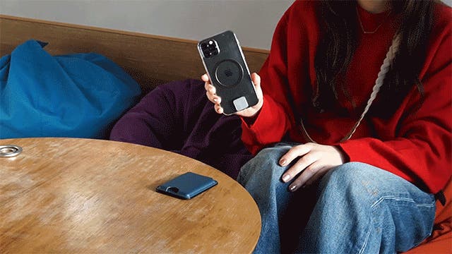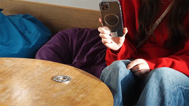 スマホの取り外しが一瞬なので、スマホ決済もスマートに。片手が塞がっていても、簡単にMAGHOLに取り付けることができます。