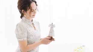 ・胸元はひし形に開きを入れ、オリエンタルな雰囲気に。上品な肌魅せを叶えます。
