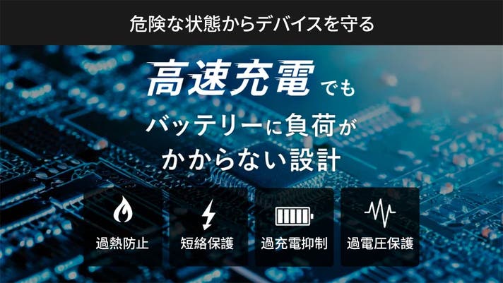 日々の使用において、デバイスやバッテリーを余計な負担から守り、結果的に機器の寿命にも貢献。見えないところにこそ、こだわりがあります。