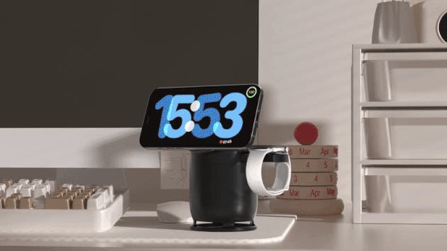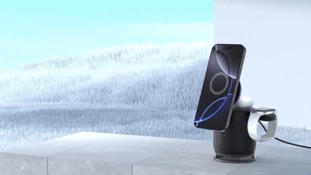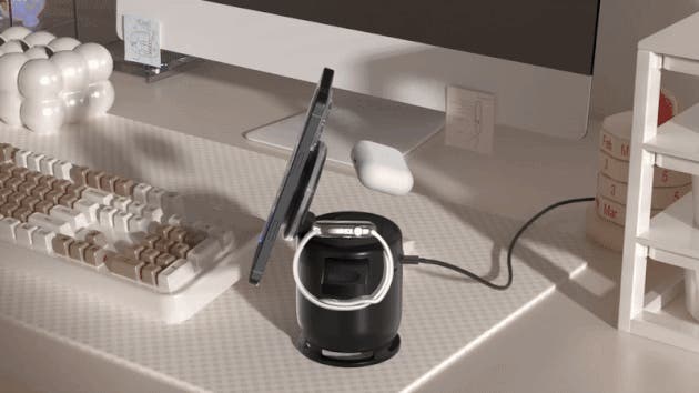 ミニマルな外観とシンプルな色が印象的で、どんな空間にも自然に溶け込みます。使うときは、スマホ・AirPods・Apple Watchを3台まとめてワイヤレス充電。使わないときは、本体を折りたたむと小さなスピーカー型に変身。どこに置いても邪魔にならず、むしろちょっとしたインテリアのような存在感です。