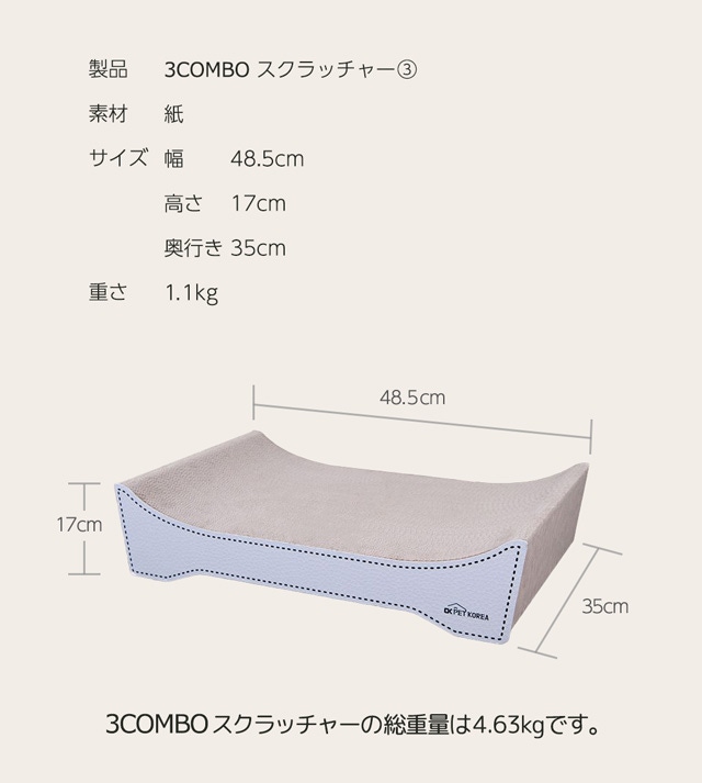 3COMBOスクラッチャーは、猫の多頭飼いの飼い主でもある、韓国のOKPETにより商品化されました。研ぎカスが飛び散りにくいダンボール素材を使用しており、耐久性を強くするため、一枚一枚人の手で丁寧に重ねて製作しております。
