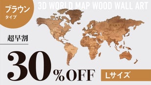 【Makuake割】リアルウッド3D世界地図 20%OFF ブラウンLサイズ