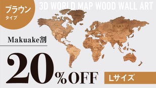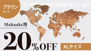 【Makuake割】リアルウッド3D世界地図 20%OFF ブラウンXLサイズ